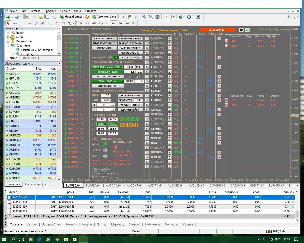 Продолжение ветки Альпари: Basketbull, отчеты по реалу.